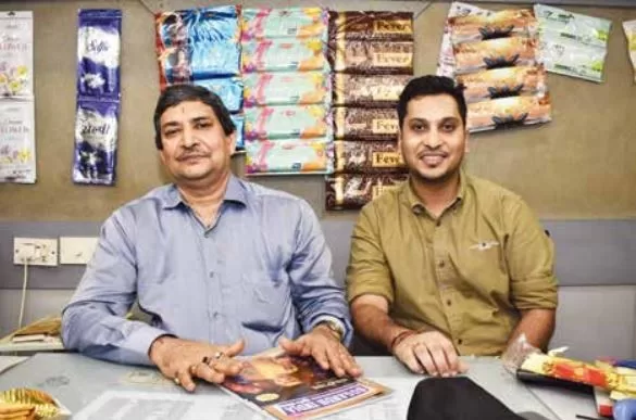 Mr. Bihani said he has been in the incense business for 48 years and has seen many ups and downs. Their trade began by buying from local manufacturers and selling, but later he went to Bengaluru to expand, where he obtained agencies for Balaji and PradhanPerfumery. Within five years Balaji’s products took off and Pradhan’s Aawaz brand became a super hit, making him a distributor here. Over his journey, he also handled agencies for Cycle and several others. Today he distributes Denim from Shashi Industries, Pradhan, and Balaji’s Prashant brand. Other Balaji products are handled by others. He also represents A Ravi Rag, AKP’s Saba, SS Fragrance, and Misbah.