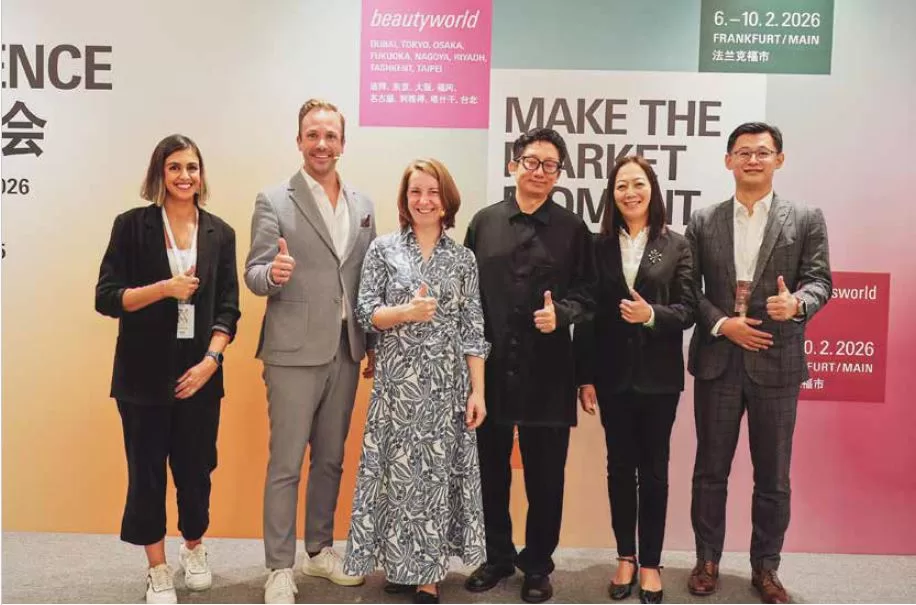 The press conference featured Julia Uherek and Philipp Ferger, Vice Presidents of Consumer Goods Fairs, Messe Frankfurt Exhibition GmbH, who addressed the media about the upcoming 2026 editions of Beautyworld, Ambiente, Christmasworld, and Creativeworld. Teresa Heitor, Portfolio Director at Messe Frankfurt Middle East, further elaborated on the upcoming Beautyworld shows and shared insights into the Middle Eastern markets. Alex Wu, CEO of Notes Shanghai, also addressed the gathering, while Edward Che, General Manager of Messe Frankfurt Shenzhen Co. Ltd., and Wendy Wen, Managing Director of Messe Frankfurt (HK) Ltd., were present at the occasion. In addition to discussions on market trends and innovations, the organisers announced the schedule of forthcoming Beautyworld events — to be held in Riyadh, Saudi Arabia (18–20 May 2026), Tokyo, Japan (18–20 May 2026), Fukuoka, Japan (16–18 February 2026), Nagoya, Japan (23– 25 March 2026), and Tashkent, Uzbekistan (20–22 November 2025) for Beautyworld Central Asia. Furthermore, Ambiente, Christmasworld, and Creativeworldwill take place from 6–10 February 2026 at the Frankfurt Fair and Exhibition Centre. The press conference concluded with Julia Uherek, Philipp Ferger, and Alex Wu engaging with media representatives during a Q&A session, followed by a group photograph.